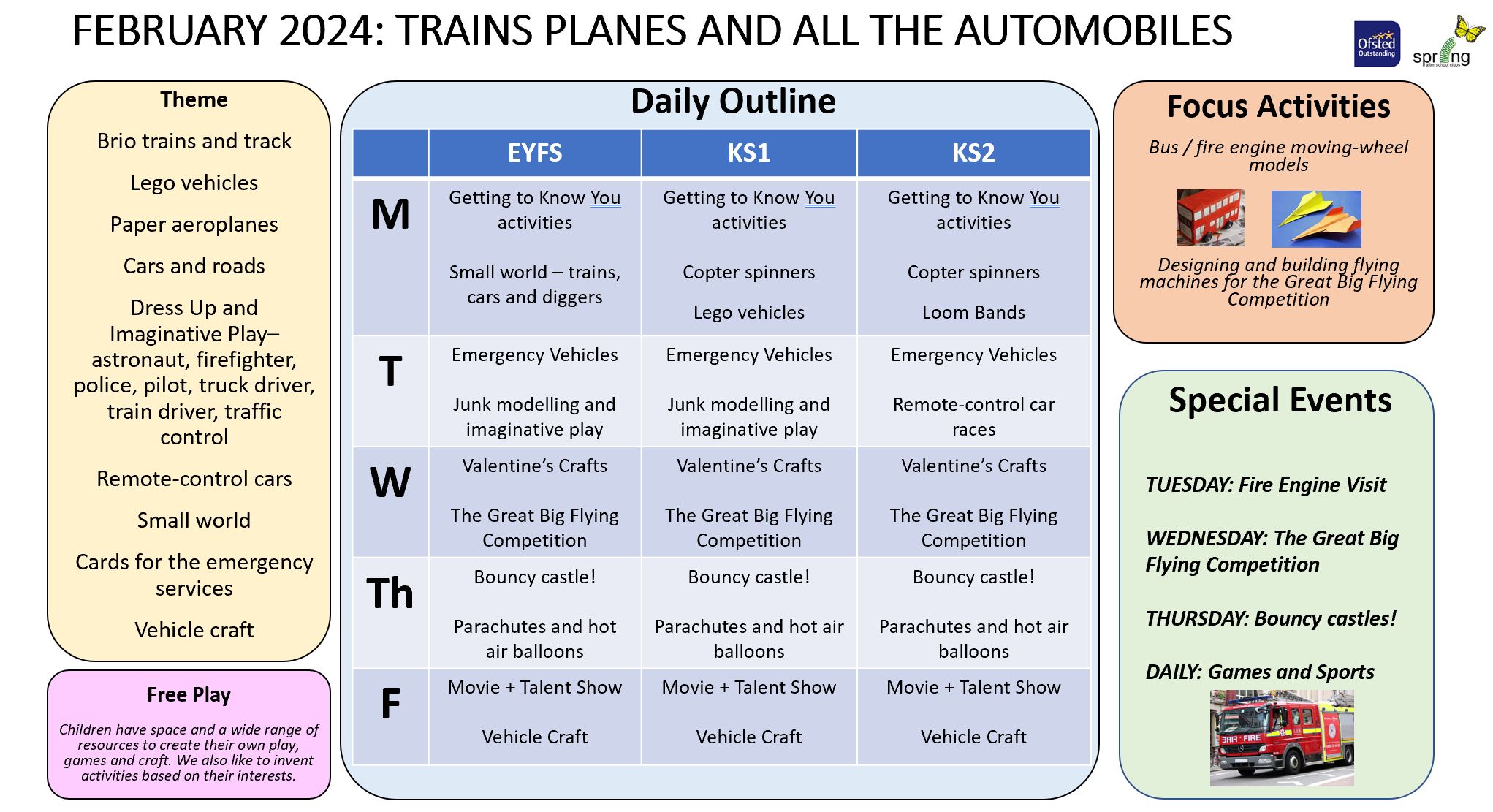 This February we are celebrating all forms of transport. Our activities include model making, imaginative play, paper aeroplane competitions, remote control car races, and a visit from the London Fire Brigade.